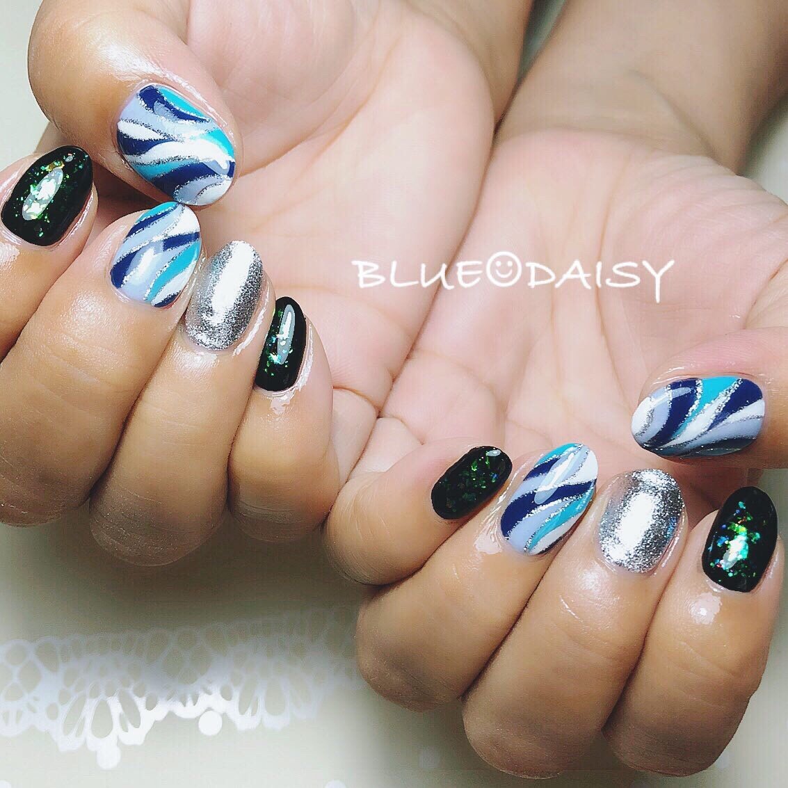 夏 オールシーズン ラメ プッチ オーロラ Blue Daisyのネイルデザイン No ネイルブック