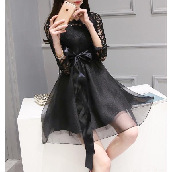 ランキング1位獲得 即日発送 一部あり パーティードレス ロング 袖あり 結婚式 ドレス 服装 謝恩会 二次会 ワンピース 卒業パーティー 卒業式 韓国 結婚式 レース 切り替え ミモレ丈 ブラック 黒 五分袖半袖 卒園式 春 夏 秋 Xl かわいい 冬 秋冬 顔合わせ 韓国ワンピース