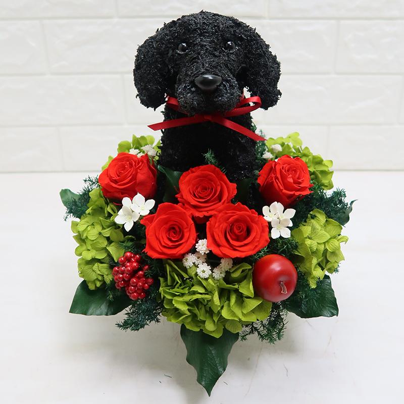 プリザーブドフラワーアレンジ 犬 トイプードルcute アトリエ花倶楽部
